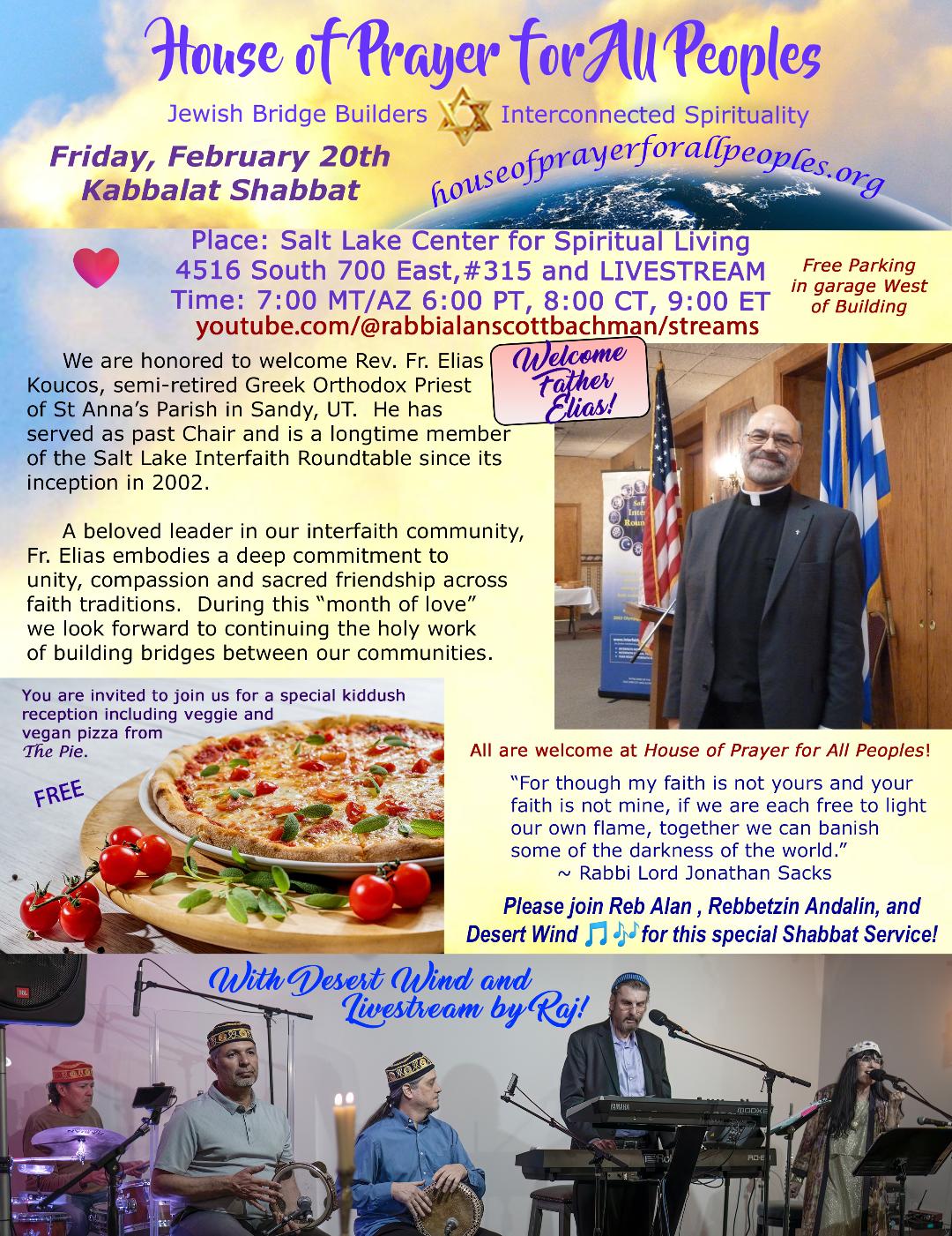 , and our interfaith family for this special Kabbalat Shabbat (in person or on livestream) followed by a joyful kiddush reception with veggie & vegan pizza.