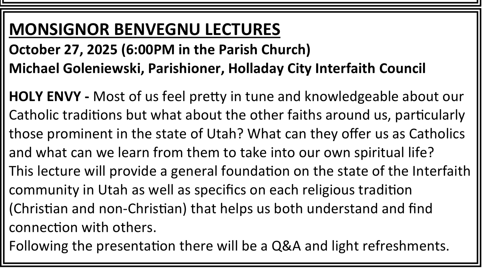 Monsignor Benvegnu Lectures