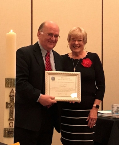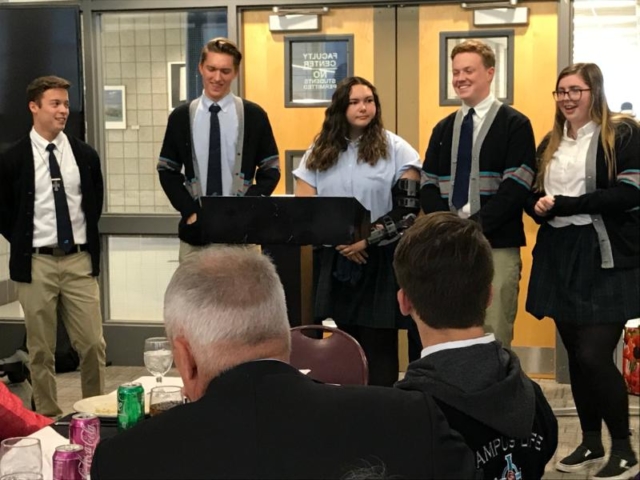 Brian Farr [Past Chair], Zeynep Kariparduc [Current Chair], James Jardine, Rev.Caryl Marsh, Ellie Thompson with Josie Stone, ]